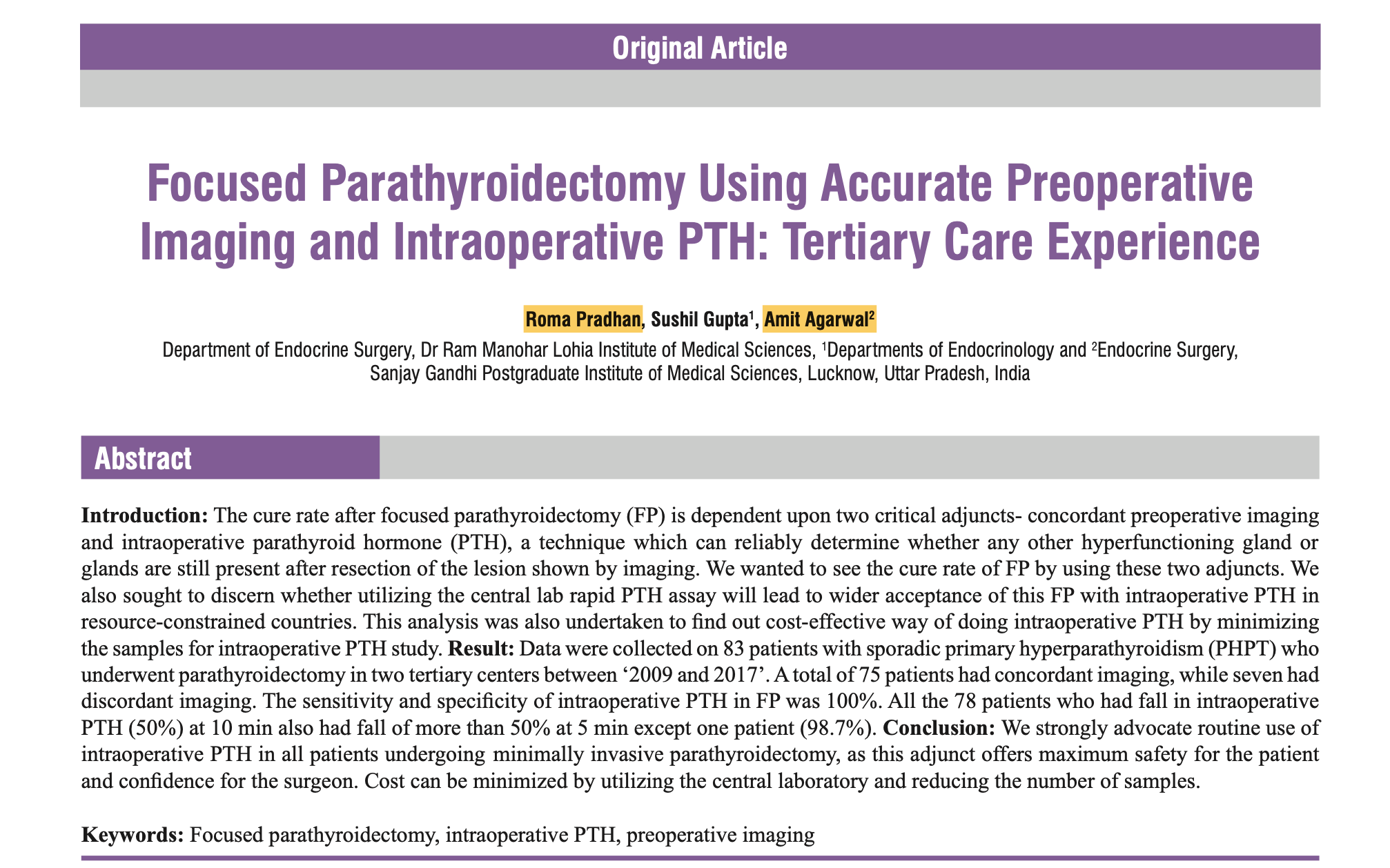 At Medanta Hospital, Lucknow, our team of highly experienced parathyroid surgeons specializes in minimally invasive parathyroid surgery, ensuring precise treatment with faster recovery and minimal scarring. With over 35 years of collective experience, Dr. Amit Agarwal and Dr. Roma Pradhan have successfully treated hundreds of patients suffering from hyperparathyroidism (HPT) and related disorders.